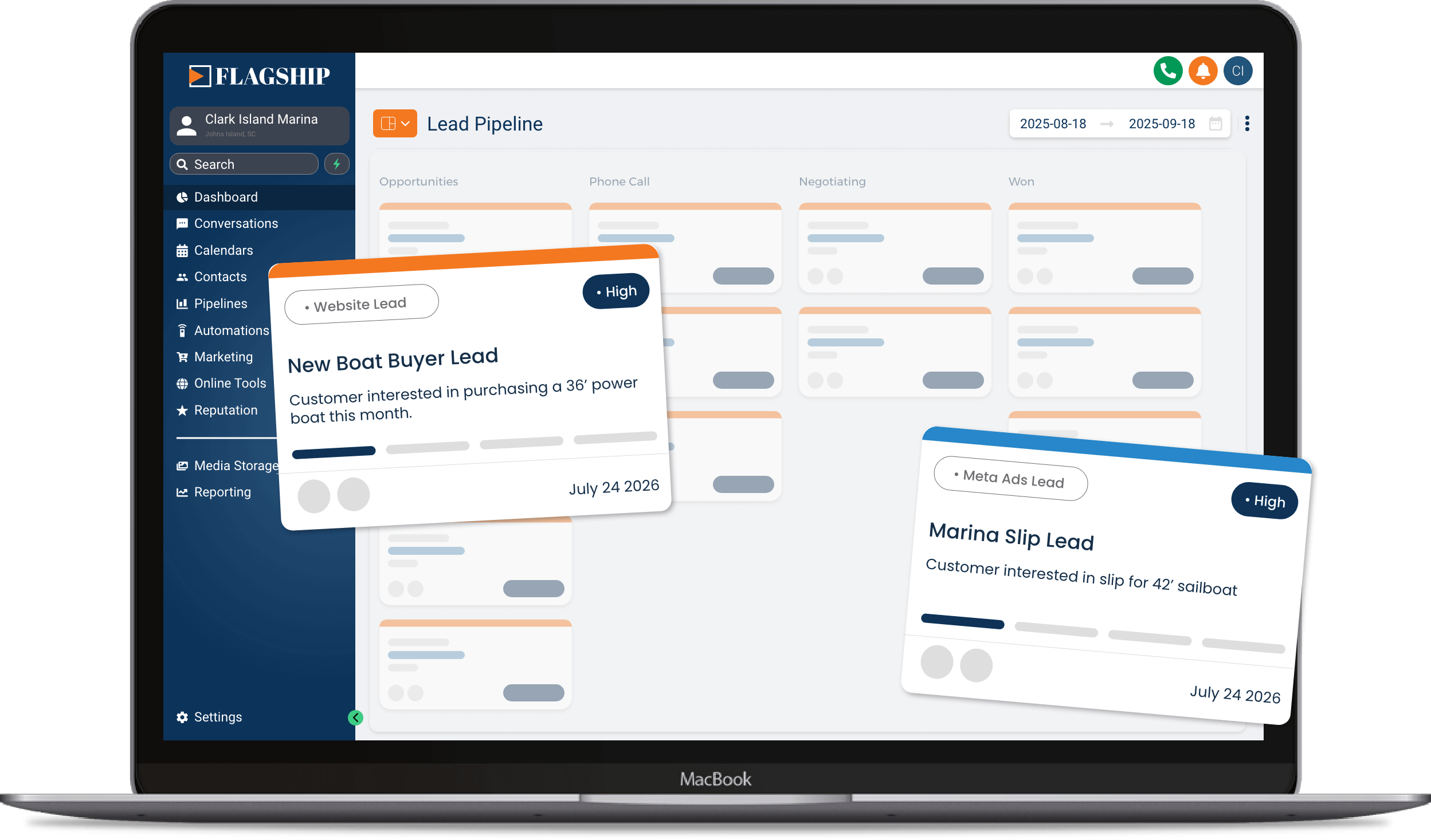 After years of running marketing for marine brands, we saw the same challenges repeat: missed leads, slow follow-ups, disconnected systems, and no way to see what actually converts. Flagship MMA solves that — combining CRM, automation, and AI tools in one system that’s simple, smart, and built for the water.